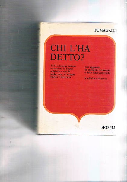 Chi l'ha detto? Tesoro di citazioni italiane e straniere, di origine letteraria e storica, ordinate e annotata da G. Fumagalli; decima edizione riveduta ed aumentata. | Libri antichi e moderni | Fumagalli Giuseppe.