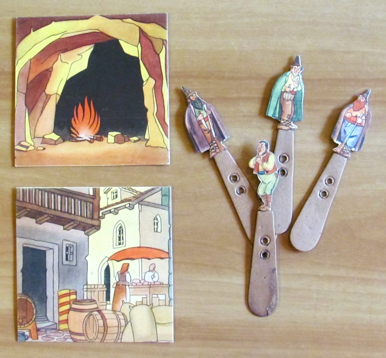 Rappresentazione animata della fiaba composta da: Busta contenitrice con 2 fondali, 4 personaggi intagliati con supporto e foglio allegato con storiella completa e didascalie utili alla rappresentazione. Busta contenitrice con mancanze dovute ad apertura maldestra. Fondali 10x10 - personaggi 7 cm, con supporto 14 cm. Completo, Raro e in Buonissimo stato. , Molto buono (Very Good)
