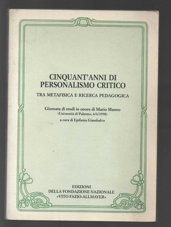 cinquant'anni di personalismo critico | Libri antichi e moderni | Epifania Giambalvo, ,Epifania Giambalvo