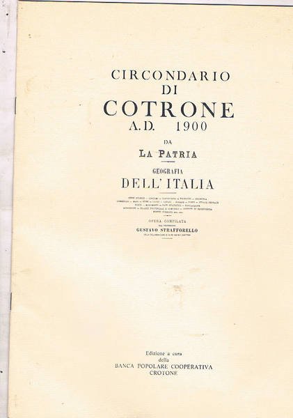 Circondario di Crotone A. D. 1900. Estratto da la patria geografia dell'Italia e riproduzione recente fatta dalla banca popolare cooperativa di Crotone. | Libri antichi e moderni | Strafforello Gustavo.