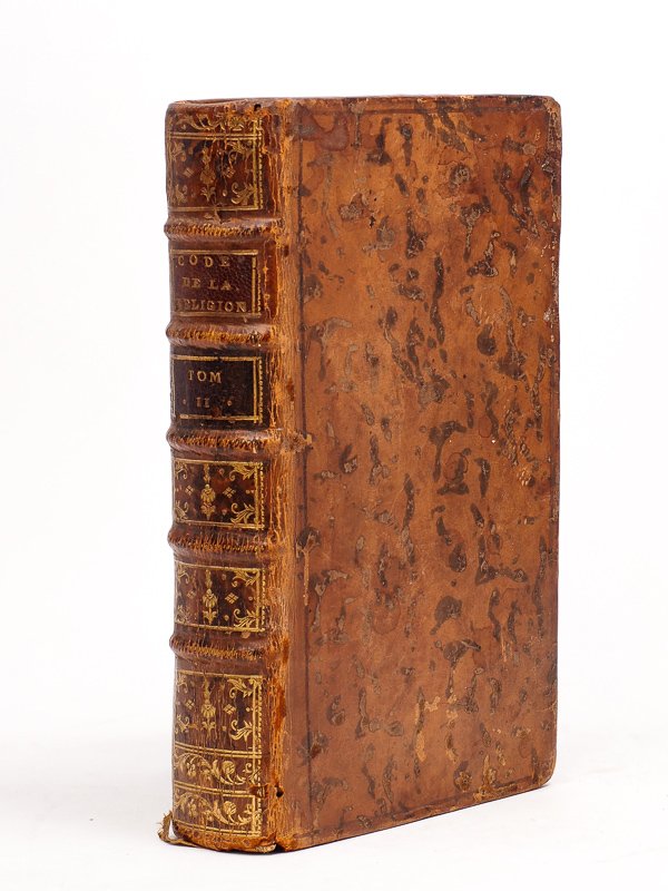 1 vol. in-12 rel. plein cuir, dos orné à 5 nerfs, toutes tr. marbrées, chez Humblot Libraire, Paris, M.DCC.LXX ( 1770 ), viij-584 pp. Etat très satisfaisant (petit mque en haut des deux derniers ff., couv. lég. frottée avec petit mque en queue, bon état par ailleurs) pour ce second et dernier tome. L'auteur était un prêtre du diocèse de Besançon, également auteur d'un 'Catéchisme historique, dogmatique et morale des fêtes principales'