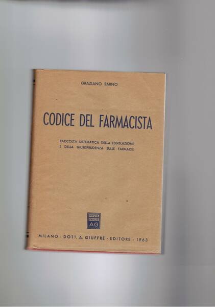Codice del farmacista. Raccolta sistematica della legislazione e della giurisprudenza sulle farmacie. | Libri antichi e moderni | Sarno Graziano.