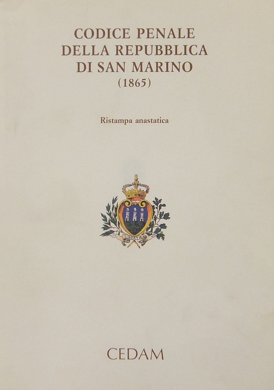Codice penale della Repubblica di San Marino (1865). Con scritti di D. Brunelli, A. Cadoppi, C. Carcereri De Prati, M.A. Cattaneo, F. Colao, M. Da Passano, L. Garlati Giugni, A. Manna, P. Pittaro, S. Vinciguerra. Raccolti da Sergio Vinciguerra | Libri antichi e moderni | Repubblica Di San Marino