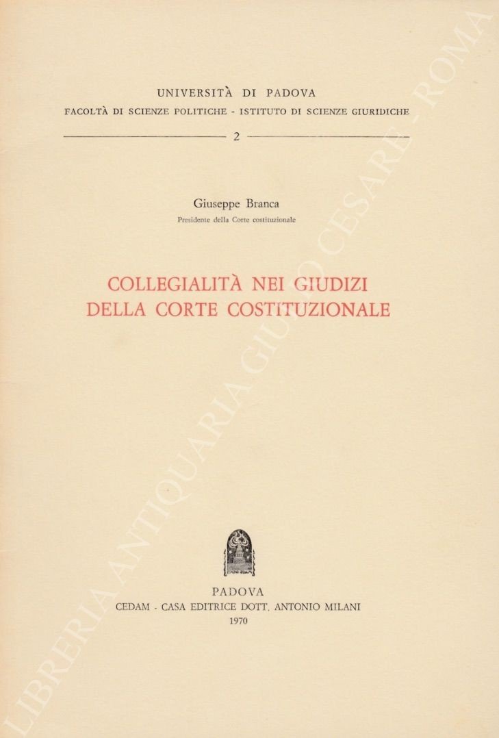 Collegialità nei giudizi della Corte costituzionale | Libri antichi e moderni | Branca Giuseppe (1907-1987)