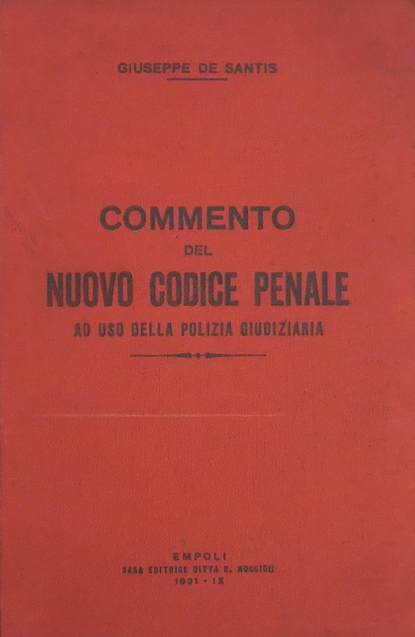 Commento del nuovo Codice Penale ad uso della polizia giudiziaria | Libri antichi e moderni | De Santis Giuseppe