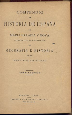 Bilbao, Imprenta de Muller y Zabaleta, 1902. 4to.; 210 pp. Encuadernación de la época en media piel.