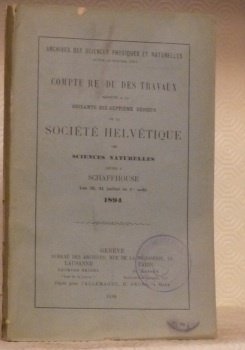 COMPTE RENDU des Travaux présentés à la soixante-dix-septième session de la Société Helvétique des Sciences Naturelles réunie à Schaffouse, les 30, 31 juillet et 1er août 1894. “Archives des Sciences Physiques et Naturelles, septembre-octobr 1894”. | Libri antichi e moderni |