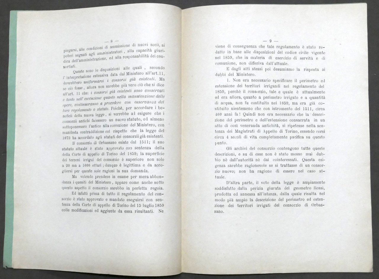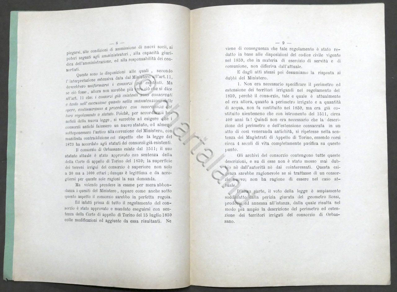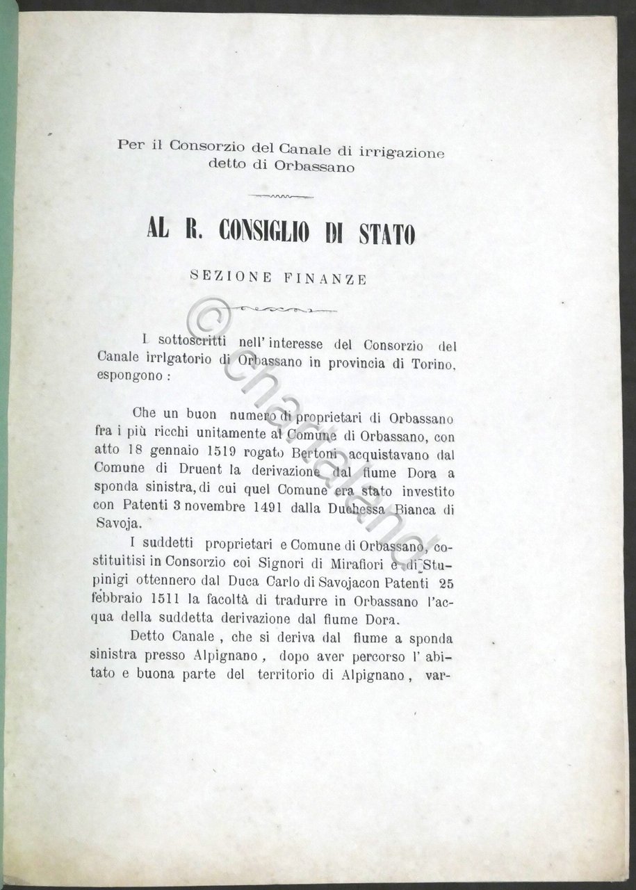 Consorzio Canale di Orbassano - Esposizione al R. Consiglio di Stato - 1885 | Libri antichi e moderni |