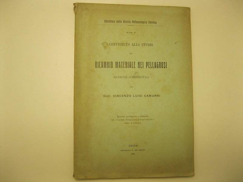 Contributi allo studio del ricambio materiale nei pellagrosi. Ricerche sperimentali | Libri antichi e moderni | Camurri Vincenzo Luigi