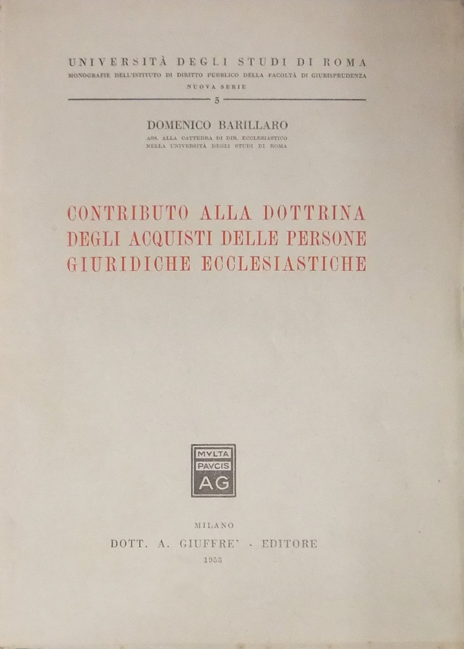 Contributo alla dottrina degli acquisti delle persone giuridiche ecclesiastiche | Libri antichi e moderni | Barillaro Domenico