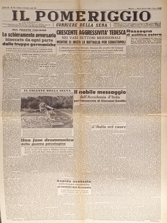 Corriere della Sera - Il Pomeriggio N. 93 - 1944 Crescente aggressività tedesca