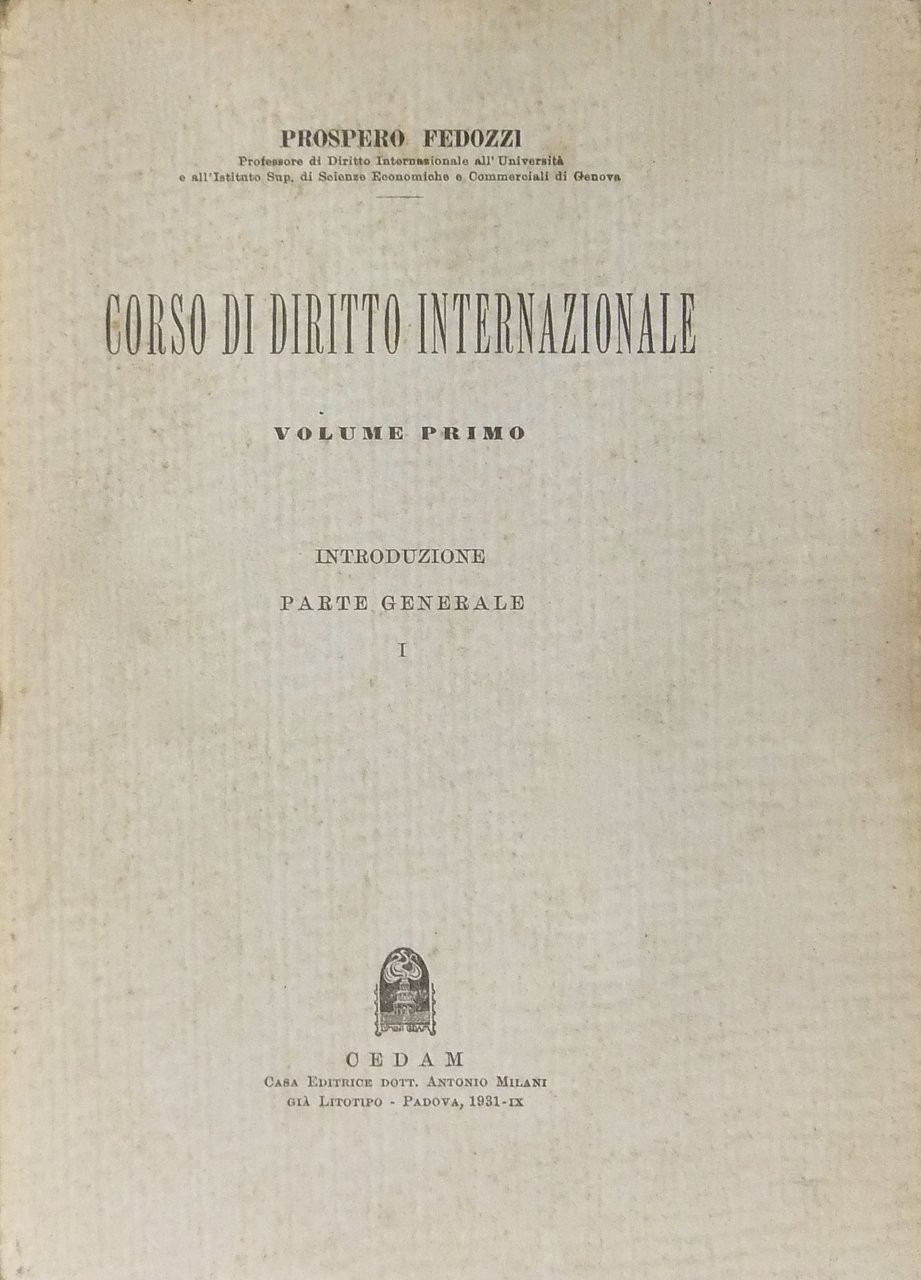 Corso di diritto internazionale. Vol. I (unico pubblicato) - Introduzione, parte generale | Libri antichi e moderni | Fedozzi Prospero