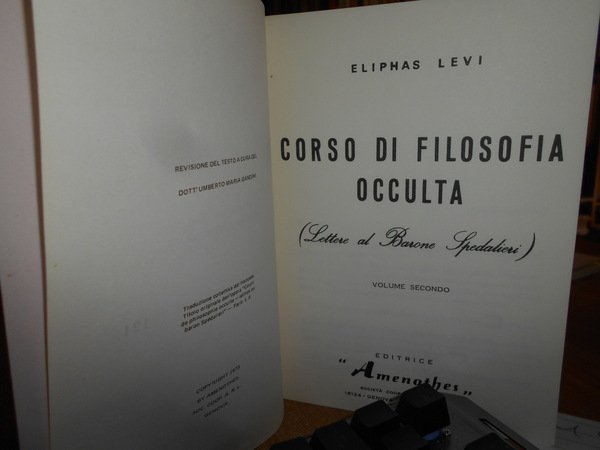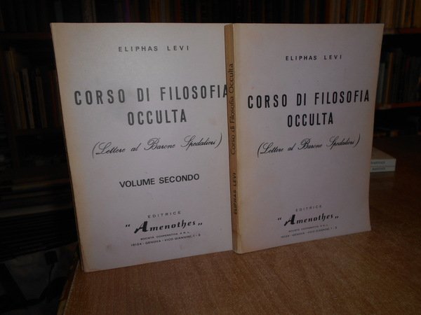 ELIPHAS LEVI. Genova, Amenothes, 1973. Corso di Filosofia Occulta (Lettere al Barone Spedalieri). 2 volumi in-8°, br. 135 pp.; 117 pp. con numerose ill. in bianco e nero n.t. Alcune note o sottolineature a matita nei due volumi ma ben conservati. Neg. esot. mob. 70 entro busta trasp.