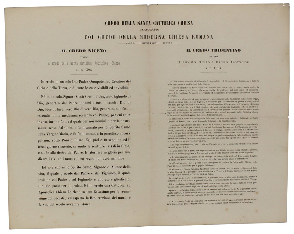 CREDO DELLA SANTA CATTOLICA CHIESA paragonato col CREDO DELLA MODERNA CHIESA ROMANA. | Libri antichi e moderni |