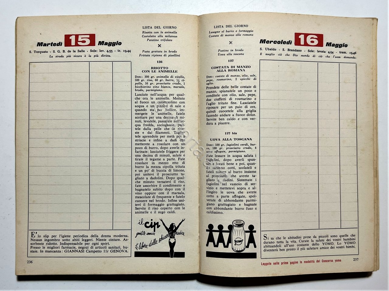 Cucina - Agenda Ricettario - Libro di Casa Domus 1956 | Libri antichi e moderni |