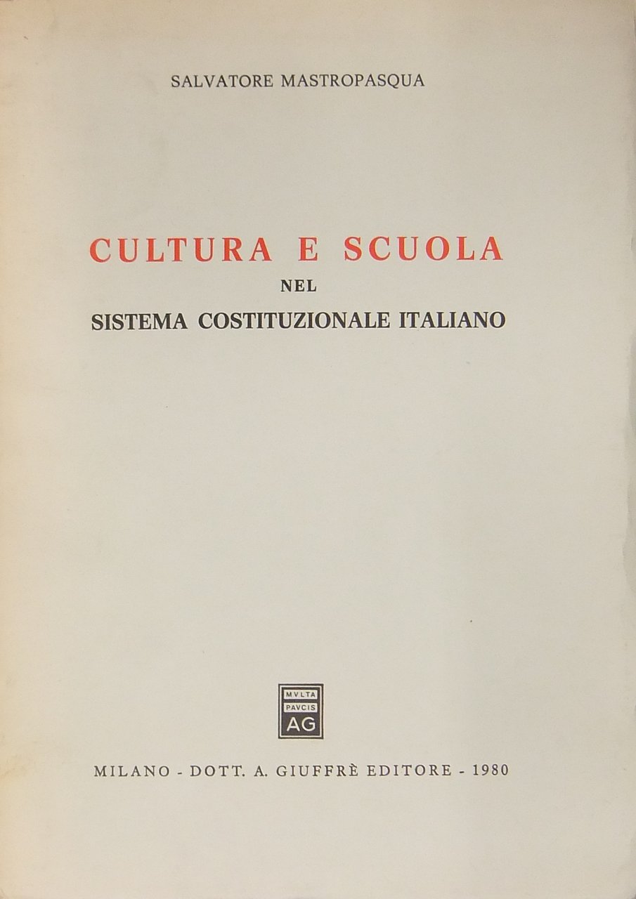 Cultura e scuola nel sistema costituzionale italiano | Libri antichi e moderni | Mastropasqua Salvatore