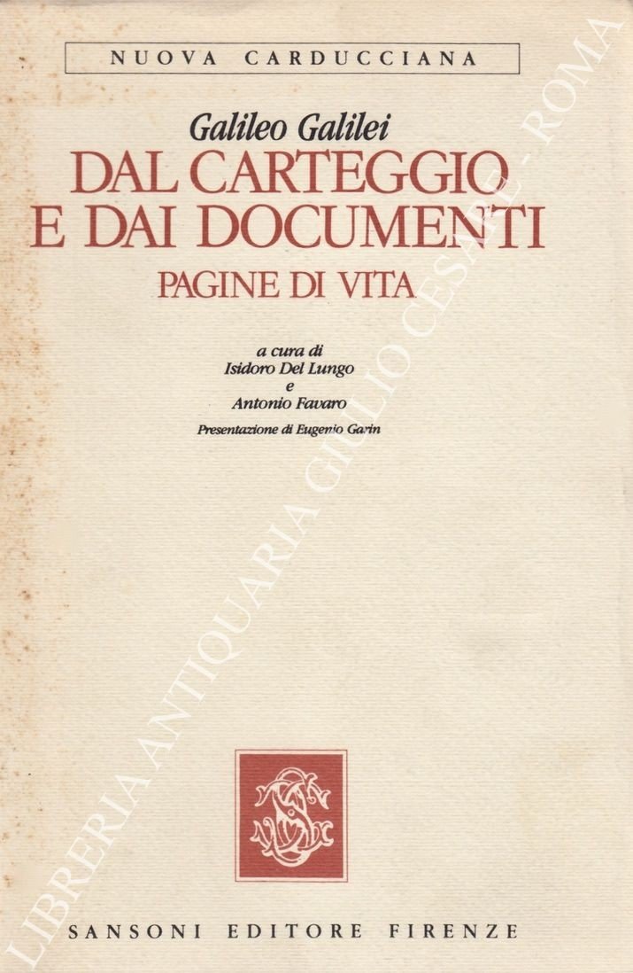 Dal carteggio e dai documenti. Pagine di vita. A cura di Isidoro Del Lungo e Antonio Favaro. Presentazione di Eugenio Garin | Libri antichi e moderni | Galilei Galileo (1564-1642)