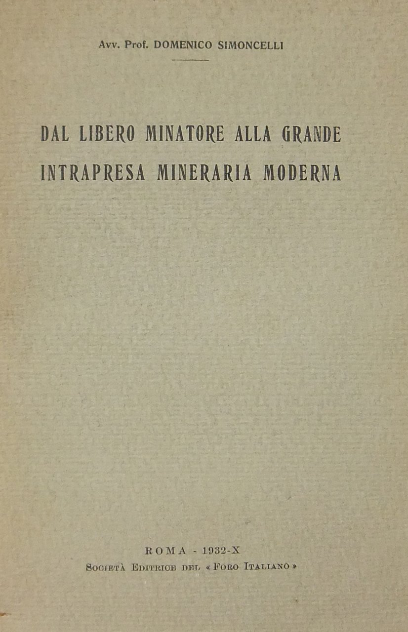 Dal libero minatore alla grande intrapresa mineraria moderna | Libri antichi e moderni | Simoncelli Domenico