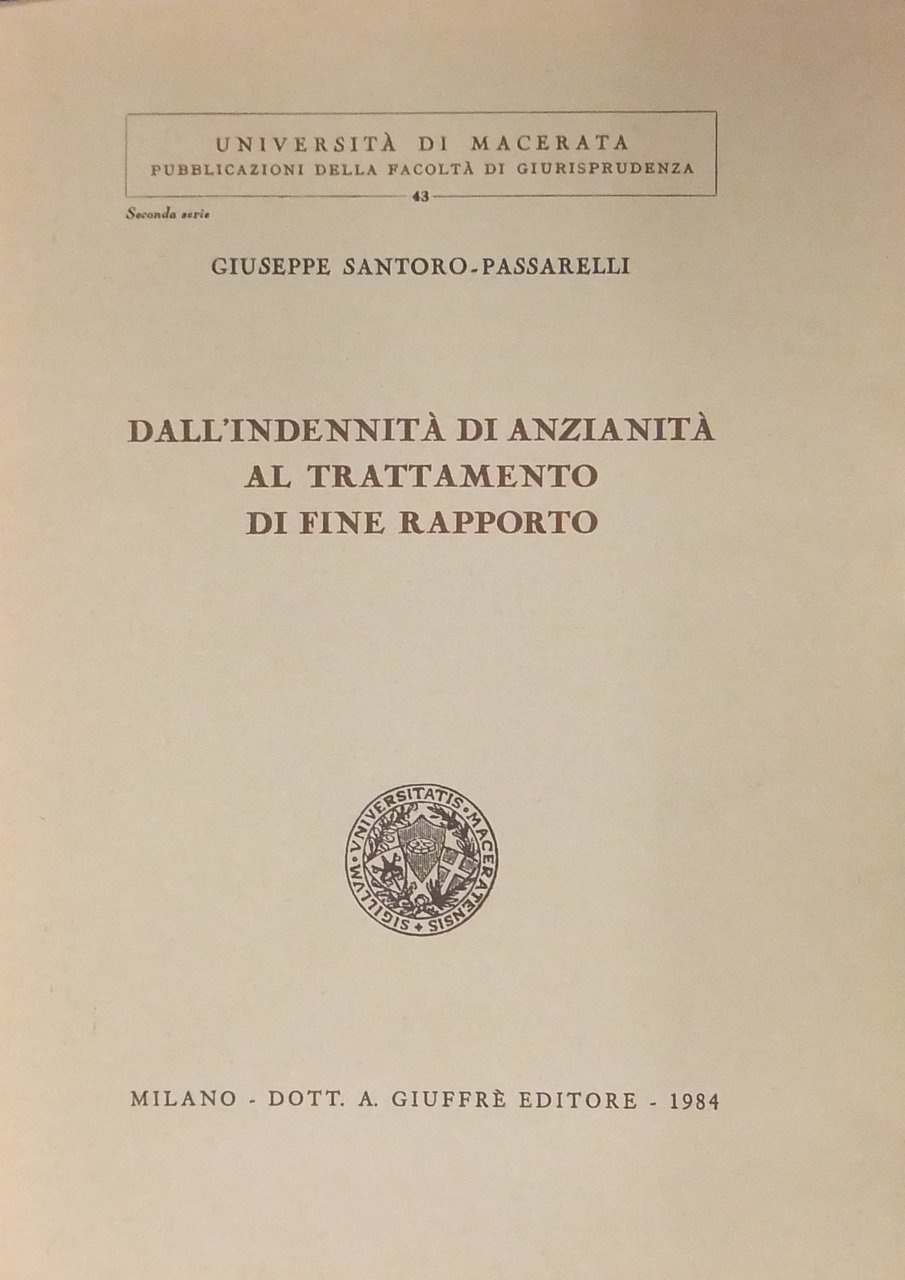 Dall'indennità di anzianità al trattamento di fine rapporto | Libri antichi e moderni | Santoro Passarelli Giuseppe
