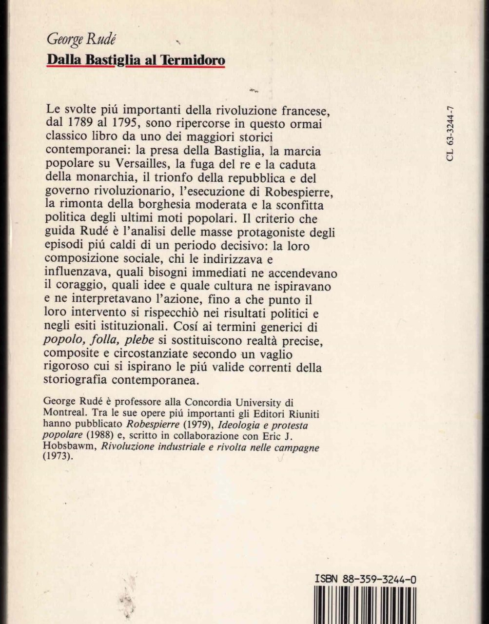 Dalla Bastiglia al Termidoro di George Rude'. Editori Riuniti 1989