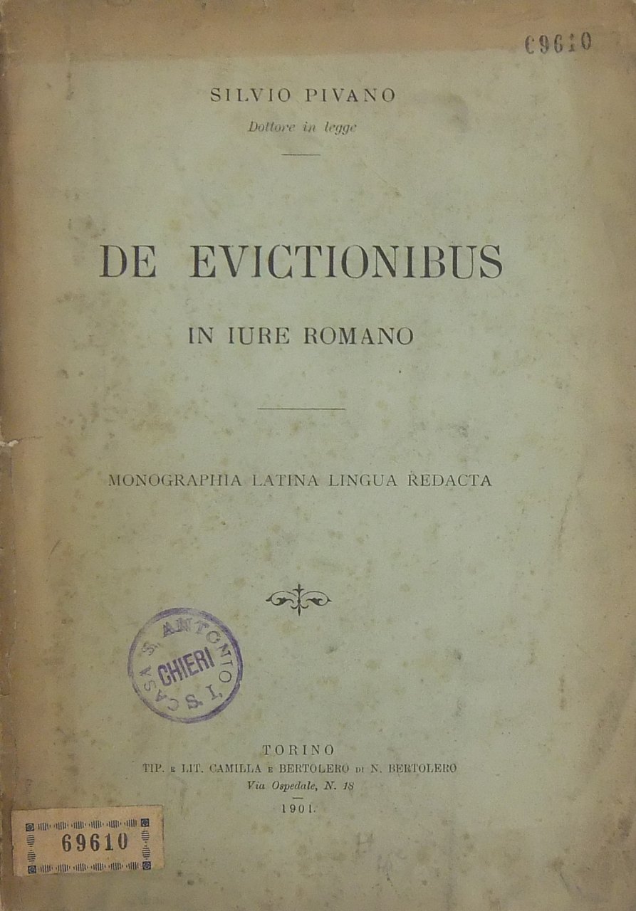 De evictionibus in iure romano. Monographia latina lingua redacta | Libri antichi e moderni | Pivano Silvio