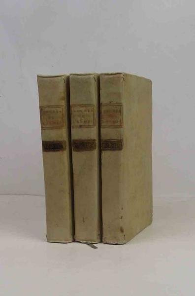 Tre volumi di cm. 20, pp. vi, clix (1) 352; vi, 536; vii (1) 468. Con ritratto di Necker inciso in nrame all'antiporta del primo volume. Privo però della tabella ripiegata che normalmente è posta al primo volume. Solida legatura coeva in piena pergamena rigida con titoli su doppi tasselli ai dorsi. Esemplare con qualche rada arrossatura, ma genuino, marginoso e ben conservato. Si tratta di una delle molteplici edizione apparse nell'anno dell'originale di questa celebre opera di economia