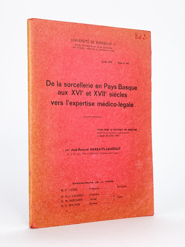 De la sorcellerie en Pays Basque aux XVIe et XVIIe siècles vers l'expertise médico-légale. | Libri antichi e moderni | Narbaits-Jaureguy, Jean-Bernard