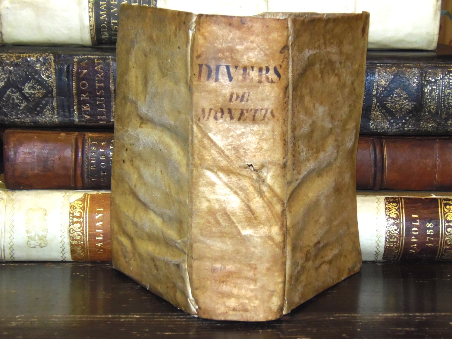 In 4° (mm 200x145); pagg. 46, (2 bianche), 914 (i.e. 912), (12).Piena pergamena coeva con unghie, con titolo manoscritto al dorso.Prima edizione di questa raccolta di trattati economici redatta da Gaspare Antonio Tesauro, magistrato del Duca di Savoia. Nel Rinascimento, gli Stati avevano abbassato il valore della moneta, rendendo così problematica la soluzione di debiti contratti in precedenza. I vari "economisti" dell'epoca lamentarono tale comportamento e scrissero numerosi trattati sull'argomento. In questa raccolta sono contenuti: De monetarum potestate et utilitate libellus, di Gabriel Biel; Libellus de utilitate et potestate monetarum di Joannis Aquila; Tractatus. de monetis D. Martinus Garratus ; Tractatus monetarum di Franciscus Curtius ; Tractatus monetae, seu pecuniarum, an debeat inspici valor tempore contractus, vel loci etc. di D. Joannes Regnaudus; Tractatus augmenti, et diminutionis monetae di Alberto Bruno; Consilium in materia augmenti monet. factum per excelsum Collegium Papiense ; Sequitur consilium in materia monetarum di Aimone Cravetta ; Quaestiones undecim, in mat. augmenti monetarum, di autore incerto; De monetis et re nummaria di Reinerus Budelius; Tractatus de monetis di Antonio Sola; Consilium super eadem materia de Monetis di Gaspare Bellezia ; Tractatus de augmento monetarum di Gaspare Antonio Tesauro; Tractatus de variis nummariorum debitorum solutionibus di Antonio Fabbri.Discreto esemplare con fioriture e qualche brunitura della carta. Tassello cartaceo e firma di possesso al frontespizio che presenta un antico timbro (come a pag. 101). Piccoli lavori marginali di tarlo alla sguardia superiore e alle ultime carte. Qualche leggera grinza e piccola macchia alla legatura, che presenta qualche menda all'interno dei piatti e un piccolo difetto al dorso
