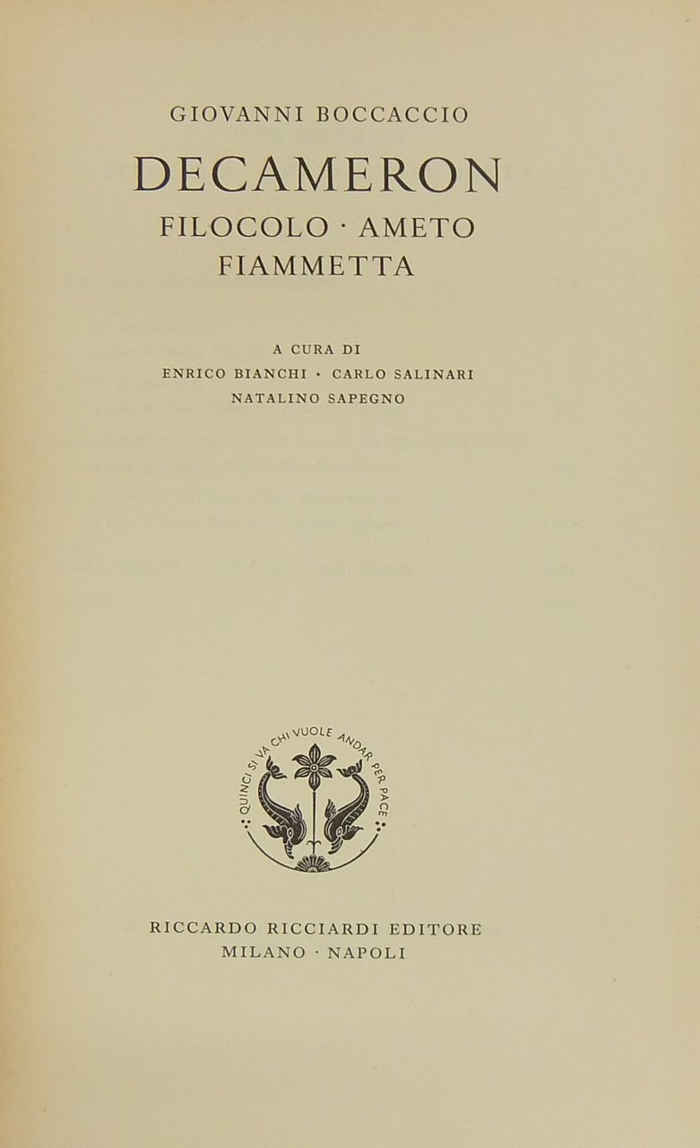 Decameron. Filocolo Ameto Fiammetta. A cura di Enrico Bianchi Carlo Salinari Natalino Sapegno | Libri antichi e moderni | Boccaccio Giovanni (1313-1375)