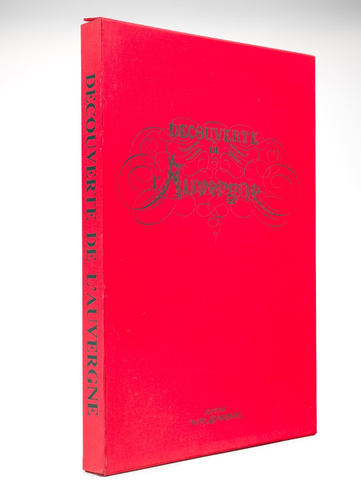 Introduction de M. Georges Conchon, un des 200 exemplaires hors commerce numérotés (n° HC 4), 1 vol. in-folio en feuillet sous emboîtage rouge, Editions Hier & Demain, s.d. [ 1972 ], 3 ff. de texte et 47 planches en noir et en couleurs (format 56 x 39 cm) Remarquable recueil bien complet des 47 reproductions de cartes et vues anciennes de l'Auvergne : Limagne d'Auverne par Gabriel Syméon (1571), carte du Duché d'Auvergne par Jansson (1658), carte du Cantal par Houdan (1790), vue cavalière de la ville de Clermont par Chéreau (1734), plan et vue d'Aurillac, vue du Puy en 1607, Saint-Flour, Riom, Vallée de Vic, Bussi la ville, etc. Bon état (emboîtage lég. frottée, bon état par ailleurs)