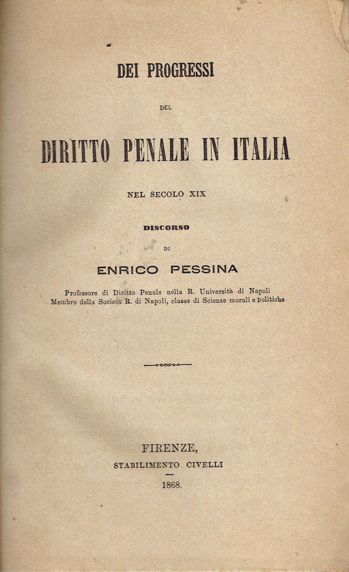 Dei progressi del diritto penale in Italia nel secolo XIX | Libri antichi e moderni | discorso di Enrico Pessina, ,discorso di Enrico Pessina