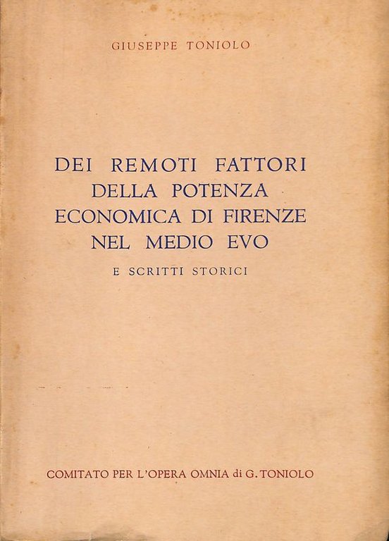 Dei remoti fattori della potenza economica di Firenze nel Medio Evo e scritti storici | Libri antichi e moderni | Toniolo Giuseppe