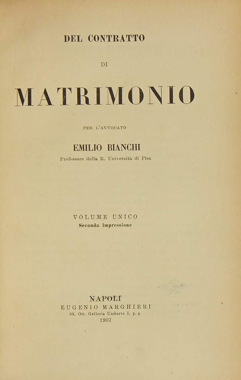 Del contratto di matrimonio | Libri antichi e moderni | Bianchi Emilio