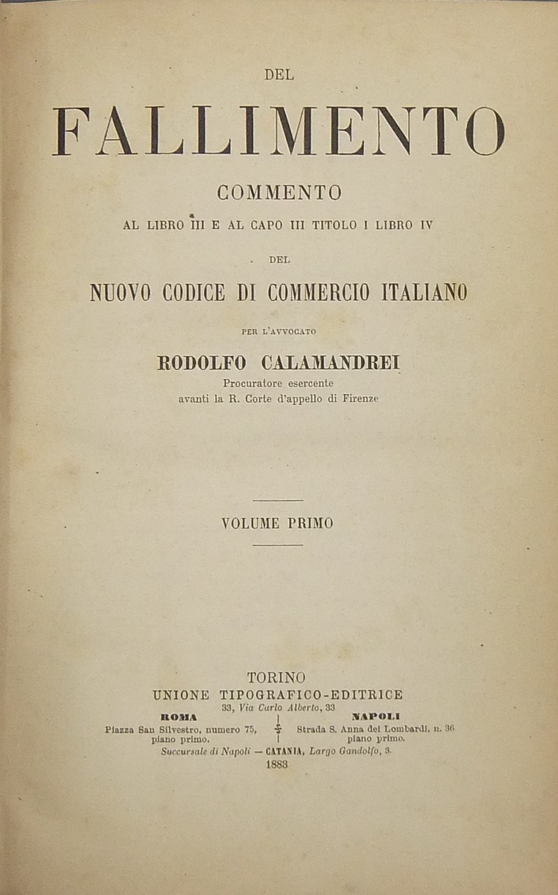 Del fallimento. Commento al Libro III e al Capo III, Titolo I, Libro IV del nuovo Codice di commercio italiano | Libri antichi e moderni | Calamandrei Rodolfo