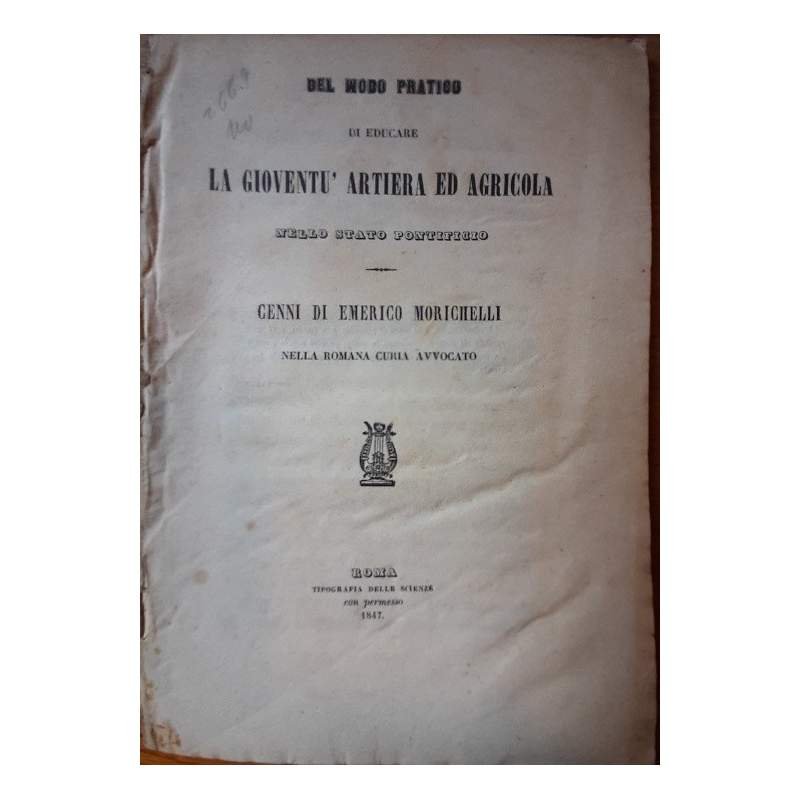 DEL MODO PRATICO DI EDUCARE LA GIOVENTU' ARTIERA ED AGRICOLA NELLO STATO PONTIFICIO(1847) | Libri antichi e moderni | Morichelli Emerico(cenni di-nella Romana Curia Avvocato)