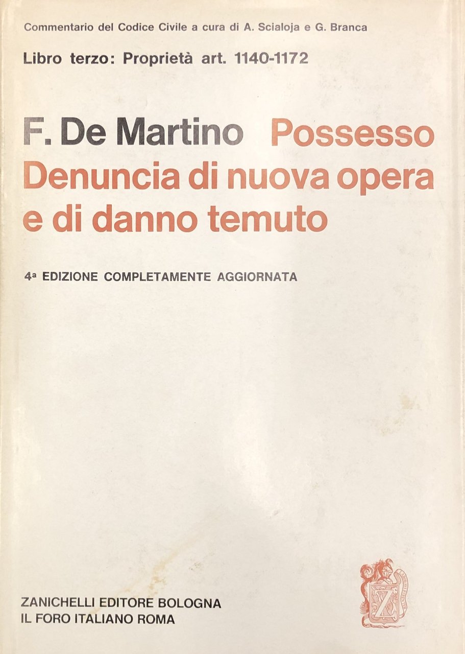 Del possesso della denunzia di nuova opera e di danno temuto. Art. 1140-1172 | Libri antichi e moderni | De Martino Francesco