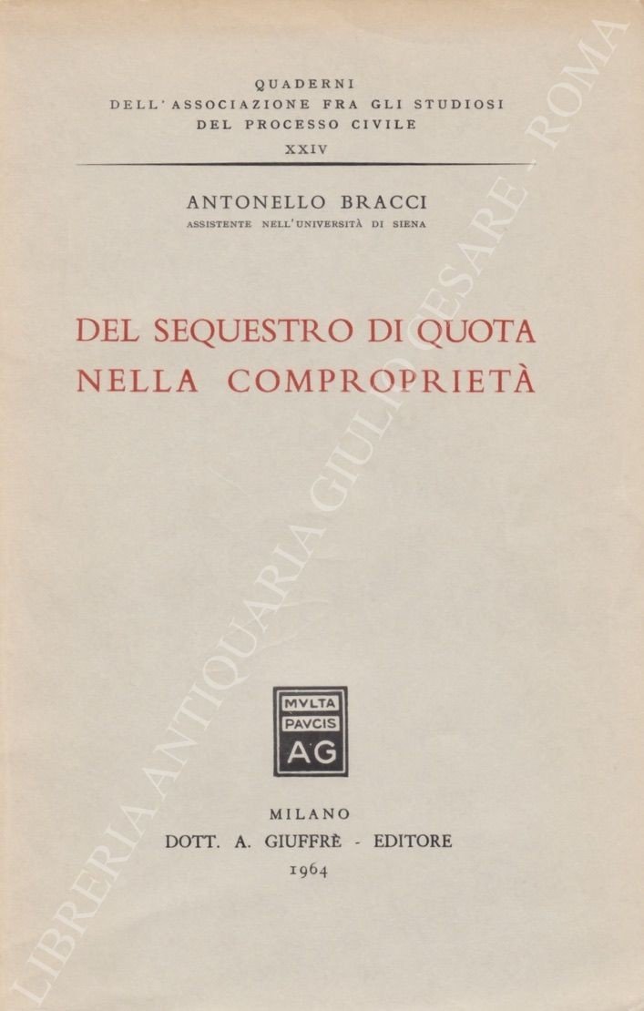 Del sequestro di quota nella comproprietà | Libri antichi e moderni | Bracci Antonello