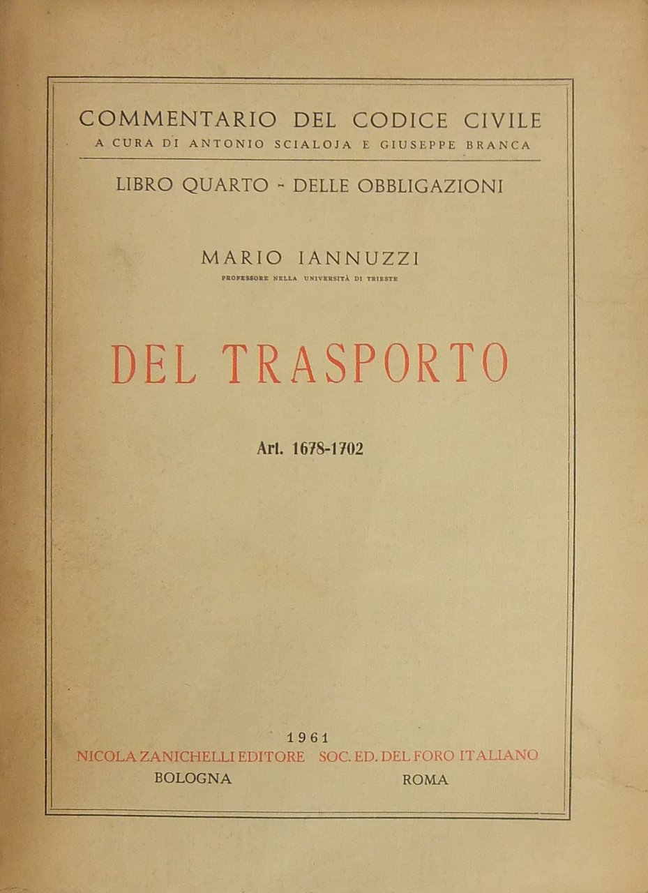 Del trasporto. Art. 1678-1702 | Libri antichi e moderni | Iannuzzi Mario