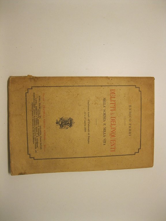 Delitti e delinquenti nella scienza e nella vita. Conferenze tenute all'Universita' di Bologna 22 e 23 marzo 1889 | Libri antichi e moderni | Ferri Enrico