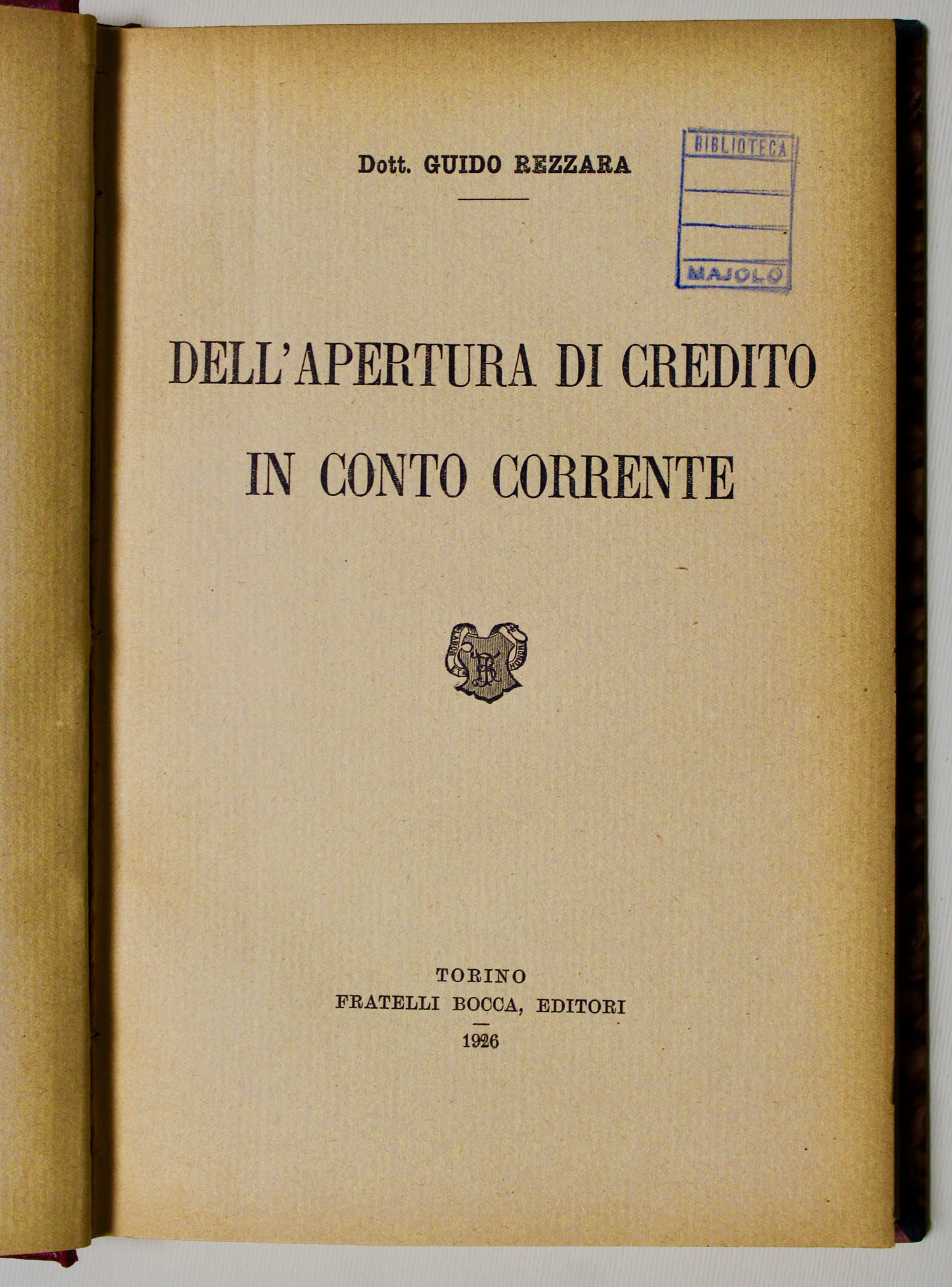 Dell'apertura di credito in conto corrente. | Libri antichi e moderni | Rezzara Guido.
