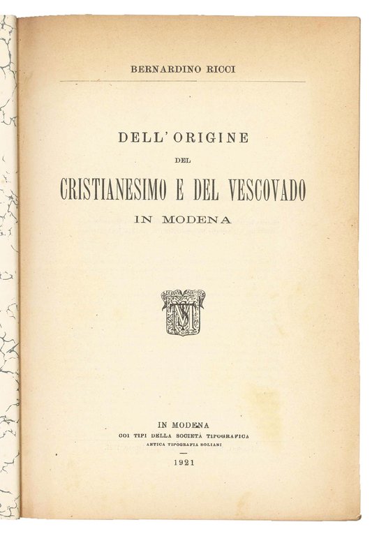 Dell'origine del cristianesimo e del Vescovado in Modena. | Libri antichi e moderni | RICCI, Bernardino