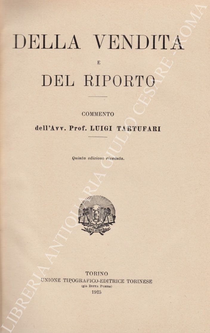 Della vendita e del riporto. (Art. 59-75) | Libri antichi e moderni | Tartufari Luigi (1864-1931)