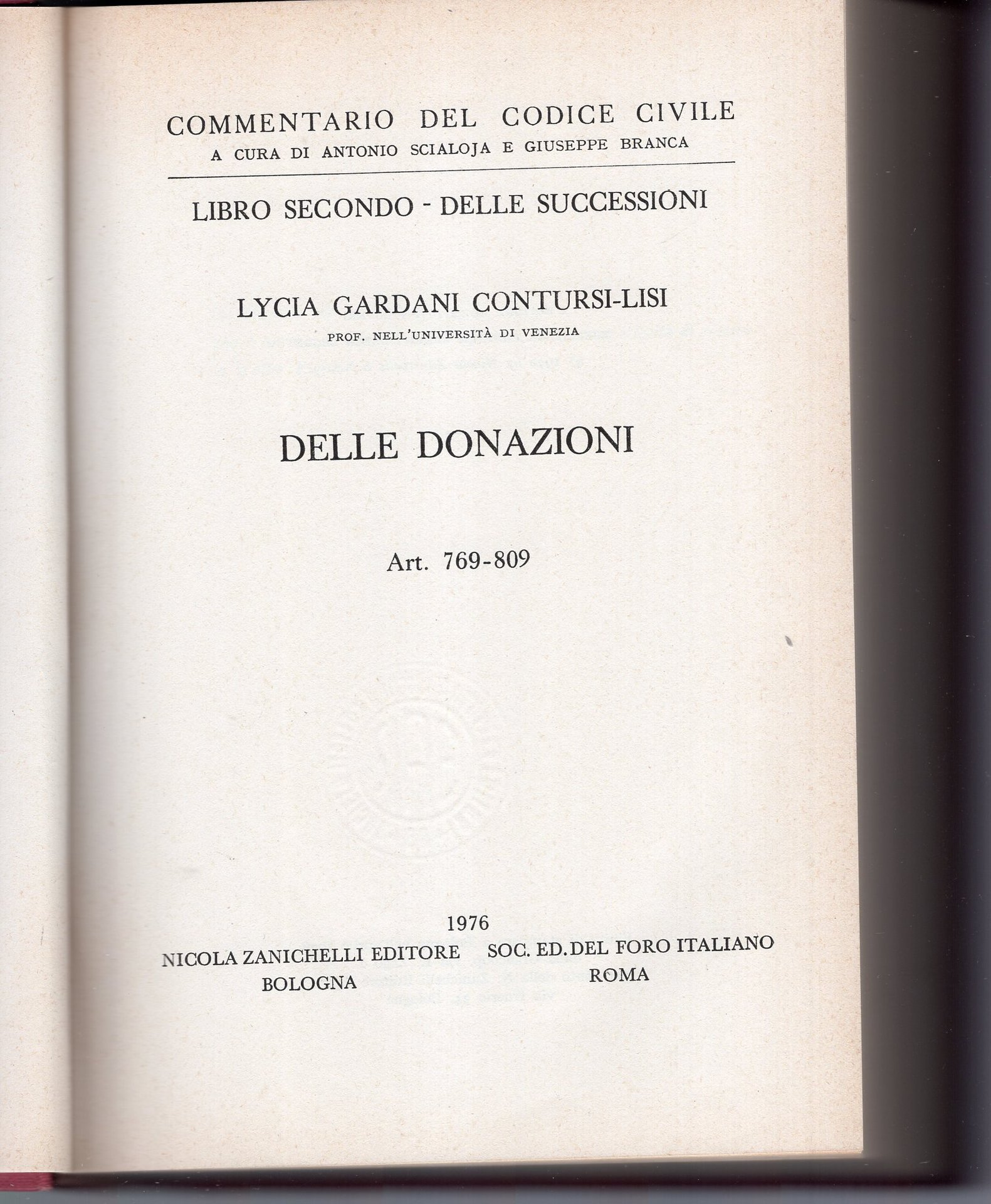 DELLE DONAZIONI ART. 769-809 ( Commentario al codice civile a cura di A. Scialoja e G. Branca) | Libri antichi e moderni | Lycia Gardani Congtursi-Lisi, ,Lycia Gardani Congtursi-Lisi