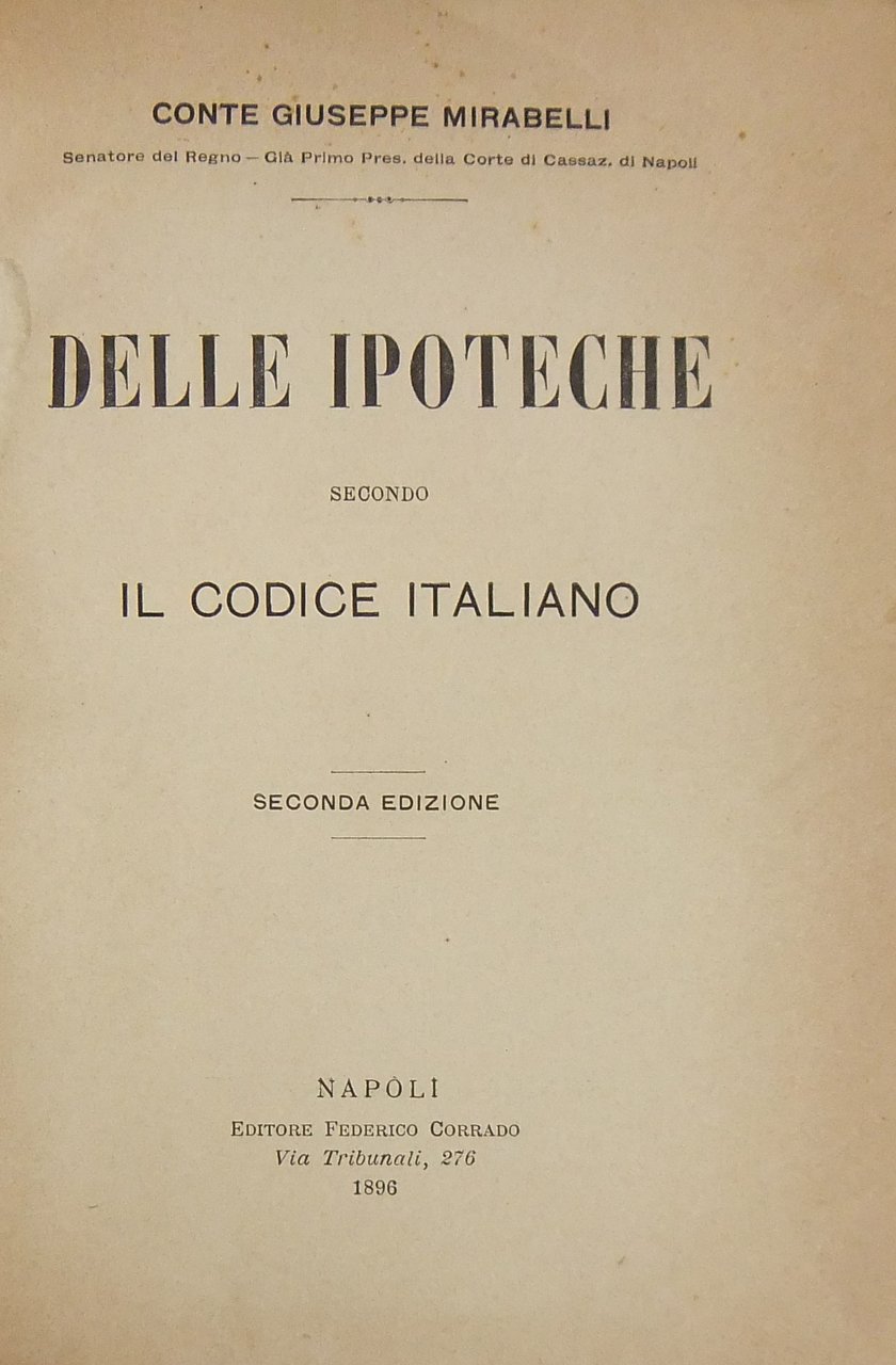 Delle ipoteche secondo il codice italiano | Libri antichi e moderni | Mirabelli Giuseppe (1817-1901)