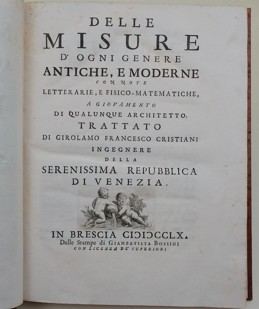 Delle misure d'ogni genere antiche e moderne con note letterarie, e fisico-matematiche, a giovamento di qualunque architetto | Libri antichi e moderni | Cristiani, Girolamo Francesco