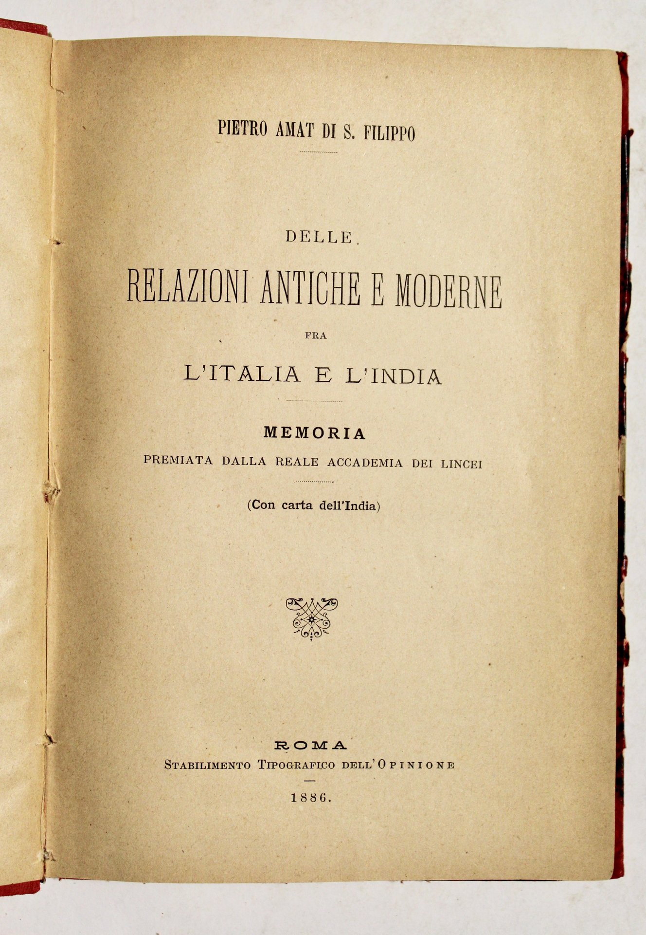 Delle relazioni antiche e moderne fra l'Italia e l'India. | Libri antichi e moderni | Amat Di S.Filippo Pietro.