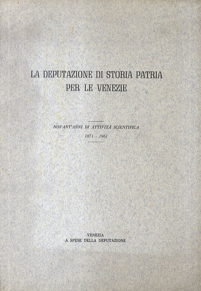 Deputazione (La) di storia patria per le Venezie. Novant'anni di Attività scientifica 1871 - 1961.