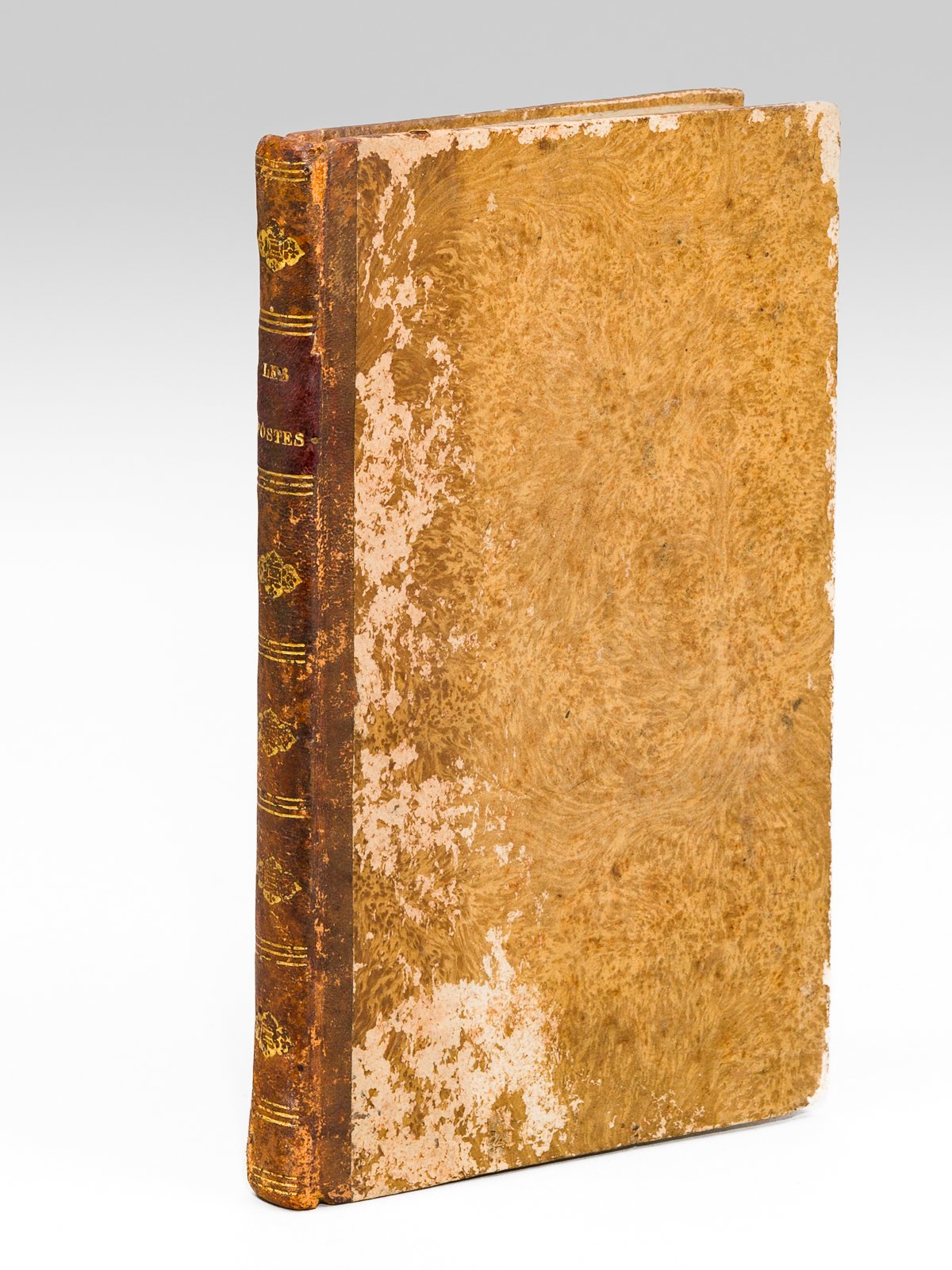 1 vol. in-8 reliure de l'époque demi-basane racinée, toutes tranches marbrées, A la Librairie de Raynal, Paris, 1826, 2 ff., iv-177 pp. et 1 f. n. ch. Rare exemplaire de cette publication de l'écrivain nantais Charles Bernède. L'ouvrage fut également imprimé à Nantes par l'imprimerie de Mellinet-Malassis. L'auteur commence par un exposé sur l'origine des Postes, continue avec l'histoire des Postes en France, puis développe une longue troisième partie sur les "Postes chez tous les Peuples", en Europe mais aussi en Chine, au Siam, au Boutan, au Japon ou en Amérique (dont le Pérou). La quatrième partie concerne la "Pratique des Postes". Etat très satisfaisant (reliure un peu frottée, deux petites piq. de vers en dos, qq. rouss. et deux petites taches d'encre, bon état par ailleurs, ex-libris en garde).