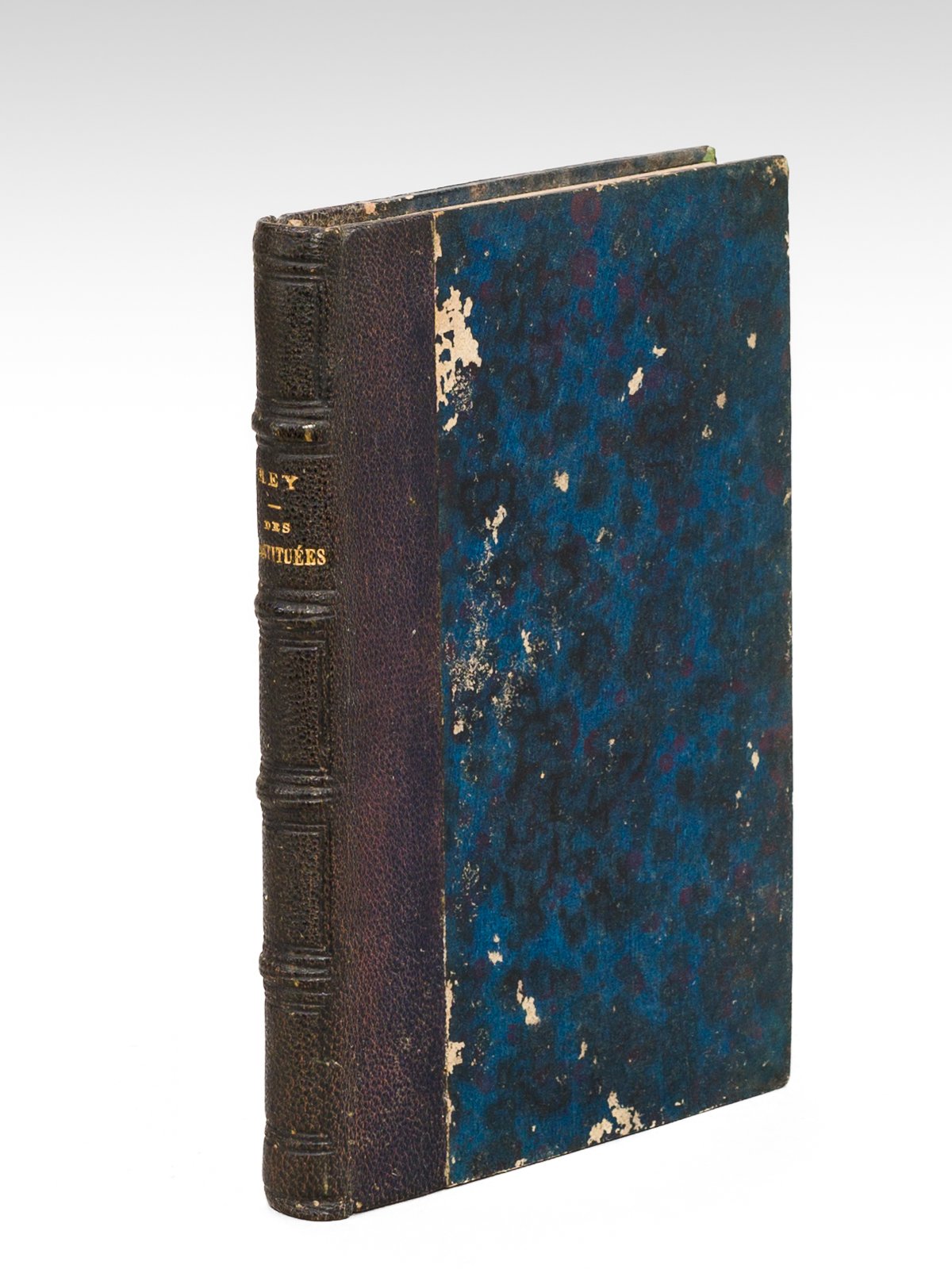 Suivi d'une notice concernant les règlements de police concernant la prostitution, 1 vol. in-18 reliure de l'époque demi-chagrin noir, Julien Lanier et Cie, Le Mans, 1847, 2 ff., 183 pp. et 1 f. n. ch. Bon état pour ce rare exemplaire de l'édition originale, auquel Jules Lemonnyer consacre une assez longue notice. Bon état (plats lég. frottés, reste d'ex-libris en garde, bon exemplaire par ailleurs). Gay-Lemonnyer, I, 863