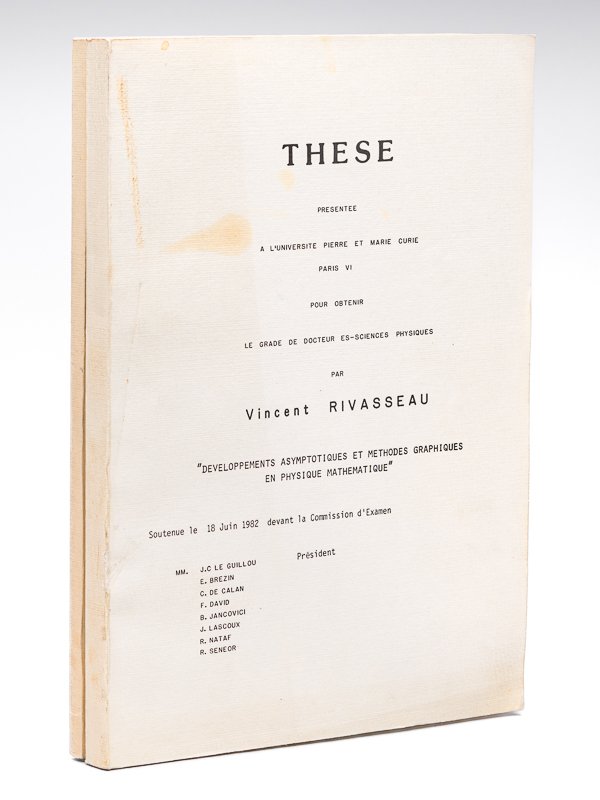Développements asymptotiques et méthodes graphiques en physique mathématique. Thèse présentée à l'Université Pierre et Marie Curie Paris VI pour obtenir le grade de docteur ès-sciences physique. Soutenue le 18 juin 1982 [ Edition originale - Livre dédicacé par l'auteur ] [ On joint :] Sommation et Estimations d'amplitudes de Feynman. Thèse présentée pour l'obtention du diplôme de Docteur de 3e cycle à l'Université Pierre et Marie Curie Paris 6, soutenue le 21 jin 1979 [ Edition originale - Livre dédicacé par l'auteur ] | Libri antichi e moderni | Rivasseau, Vincent